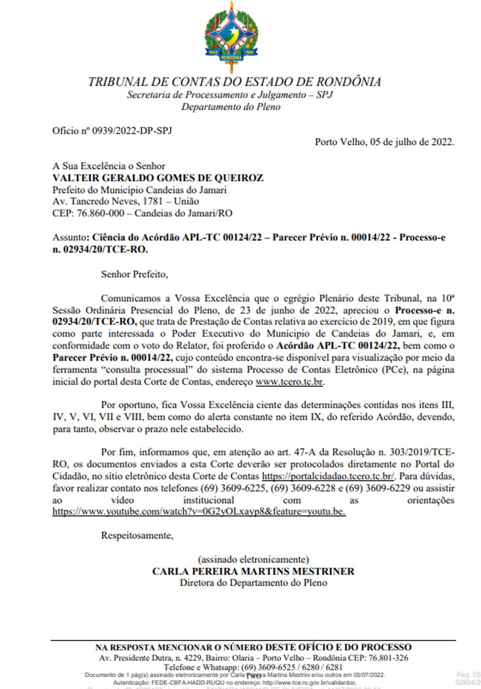 Porto Velho, RO – A decisão transitou em julgado há pouco, no dia 20 de julho deste ano. Antes disso, o Tribunal de Contas (TCE/RO) emitiu parecer pela aprovação das contas de 2019 do ex-prefeito de Candeias do Jamari, Luís Lopes Ikenohuchi Herrera; e, no mesmo acórdão, opinou pela reprovação das sob incumbência de Lucivaldo de Melo.