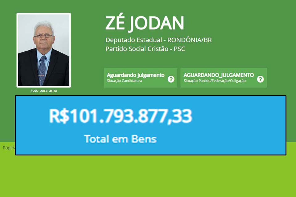 Na última eleição ao Palácio Rio Madeira, o político ele detinha R$ 46.119.655,06 em bens.