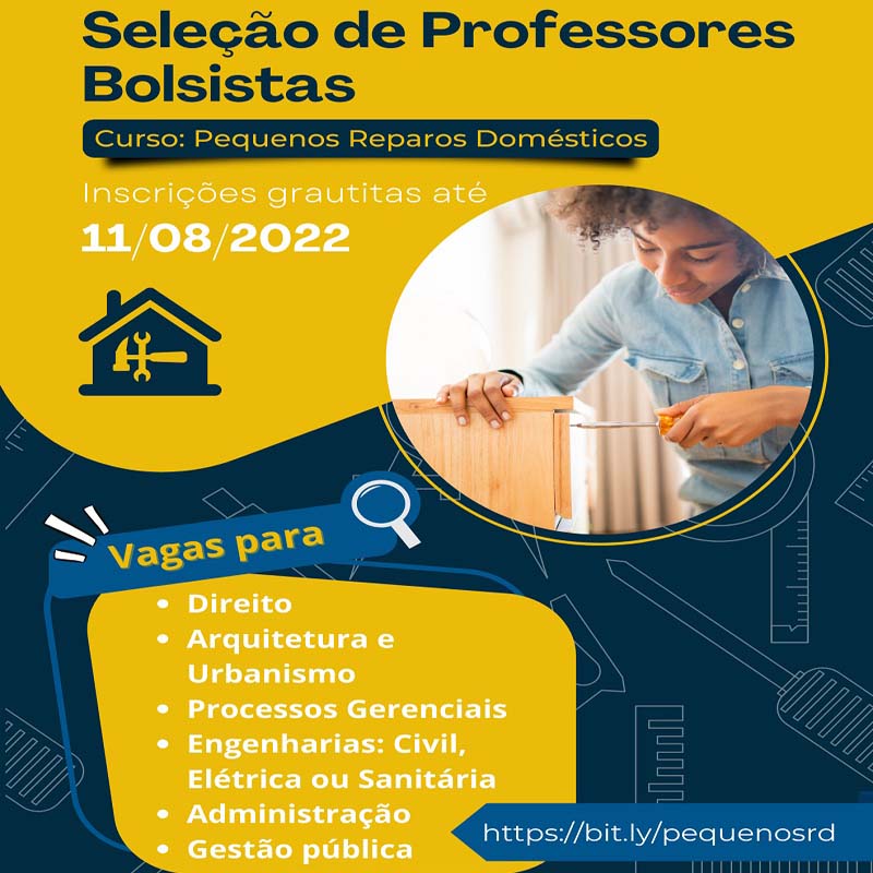 Podem participar da seleção profissionais com ou sem vínculo com o serviço público conforme os requisitos de ingresso indicados para cada função, dispostos no edital disponível em: https://selecao.ifro.edu.br/extensao-vilhena/983-edital-n-30-2022-selecao-de-colaboradores-para-curso-fic-em-pequenos-reparos-domesticos-projeto-empoderamento-da-mulher.