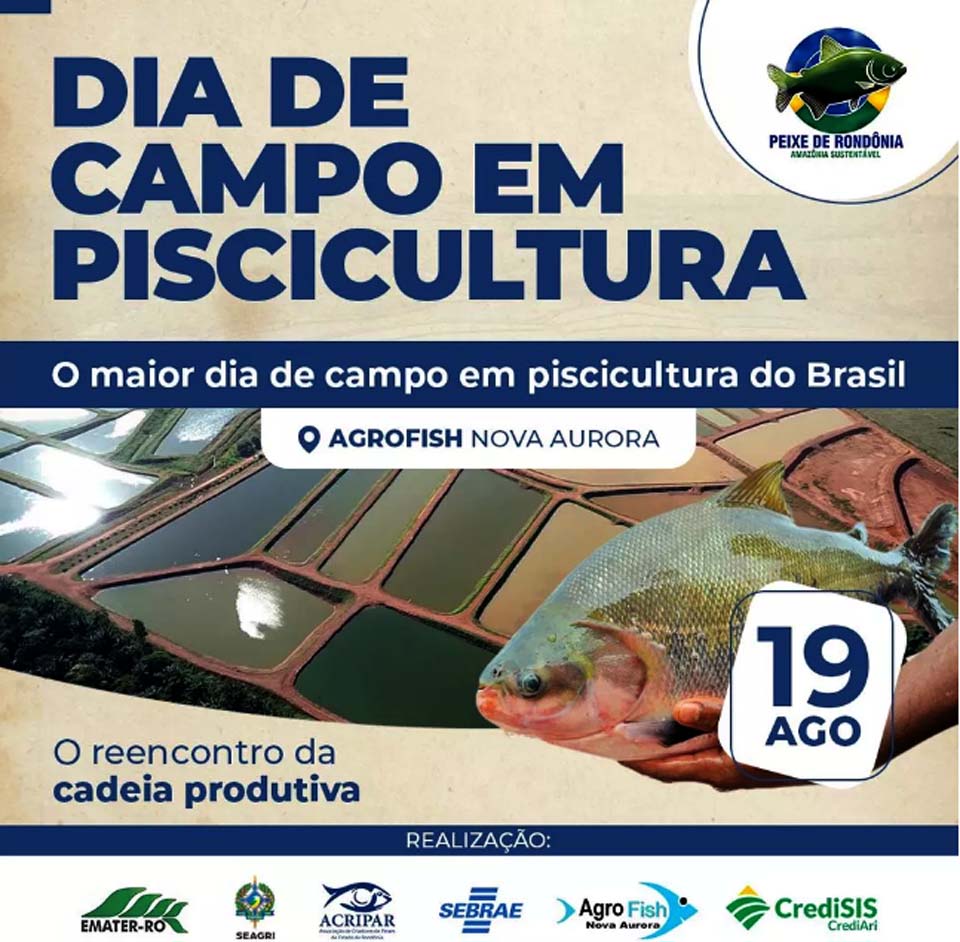 Cerca de 600 pessoas são esperadas para participar do ‘Dia de Campo em PIsicultura‘ que acontecerá em Theobroma (RO), no dia 19 de agosto, das 8h às 16h. O evento está programado para acontecer em uma fazenda, dedicada a produção de peixes.