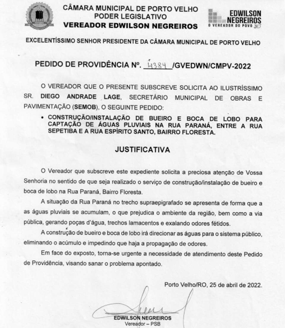 “Outras diligências céleres cumpridas pela Prefeitura de Porto Velho após intermediação do nosso Gabinete. Estamos sempre de braços abertos à sociedade para cumprir nossas missões, entre elas, claro, encaminhar as demandas do povo ao conhecimento do Executivo”, concluiu o mandatário do Poder-mirim.