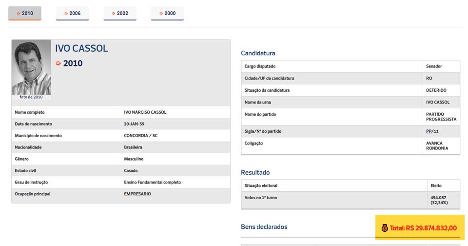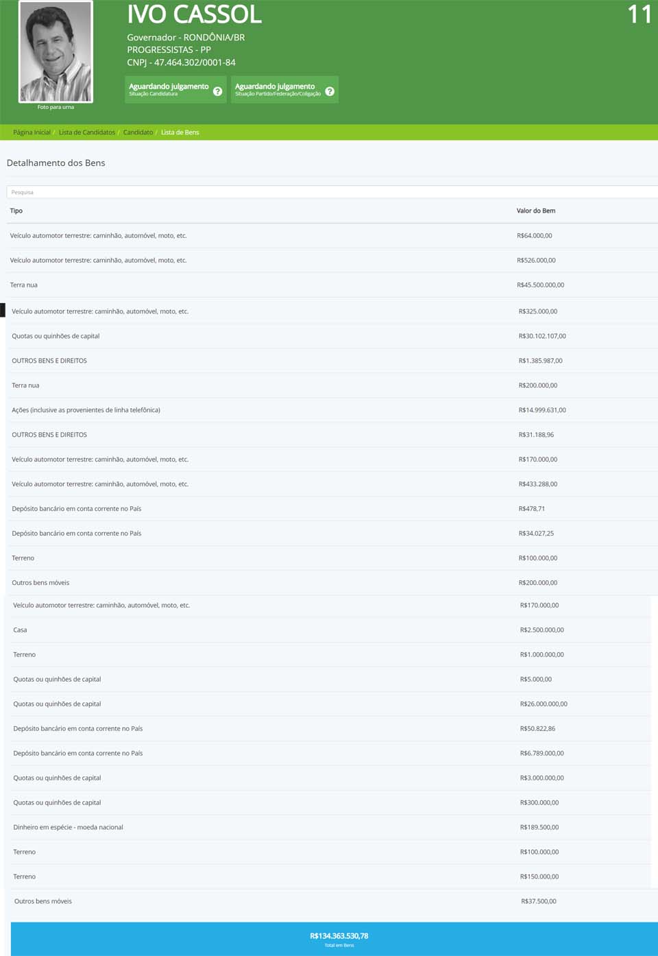 Governo de Rondônia – Ivo Cassol registra patrimônio avaliado em mais de R$ 130 milhões; a evolução é de quase 350% em 12 anos