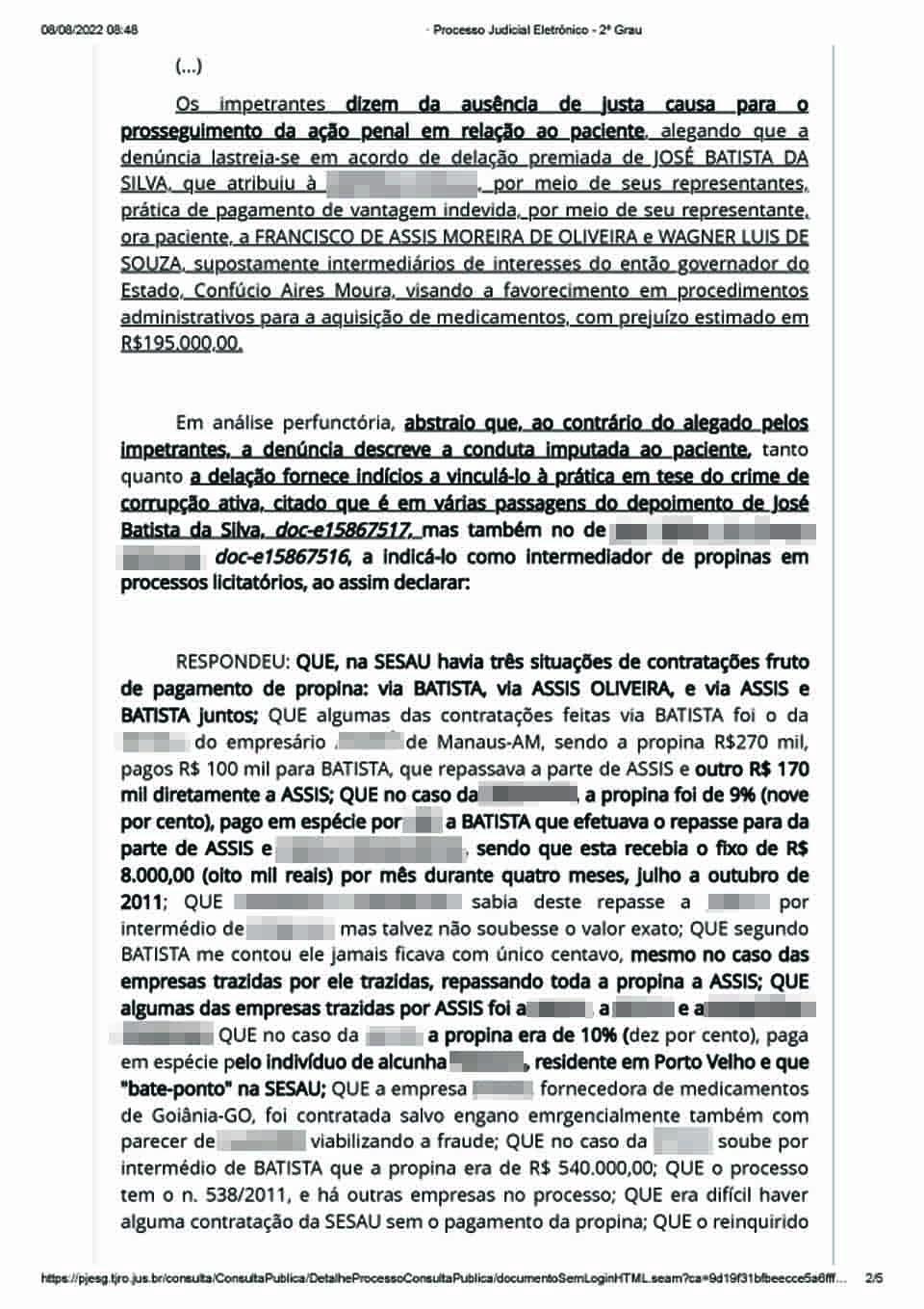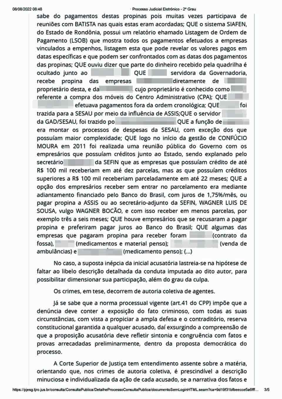 Ele foi delatado pelo ex-secretário-adjunto de Saúde (Sesau/RO) de Confúcio Moura, do MDB, José Batista da Silva.