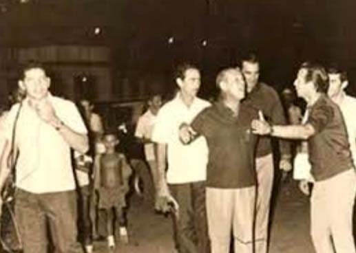 1972 – O vereador Edgar Vasconcelos (ARENA) discute com o governador do Território Paulo Nunes Leal (C), na festa do asfaltamento na Avenida Sete de Setembro (PVH). A discussão acabou quando o prefeito de Guajará-Mirim (camisa branca atrás de Paulo Leal) interferiu. À esquerda o jornalista Osmar Vilhena (PMDB), eleito naquele ano o mais votado para a Câmara portovelhense, cujos votos deram ao partido a maioria na Câmara, mas a bancada o cassou, armação atribuída por muitos ao deputado federal Jerônimo Santana. Osmar seria “inconfiável” em razão de, como jornalista da Rádio Caiari, cumprir pauta na governadoria ou o temor de Vilhena ser potencial candidato a federal. Na época o território elegia só um deputado. Em 1985 Vilhena voltou ao partido, mas só foi candidato a deputado estadual, e eleito, depois de um comerciante financiador da sigla ameaçar cortar “o pix”.
