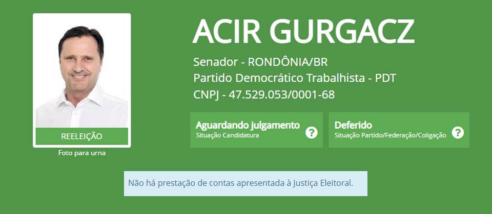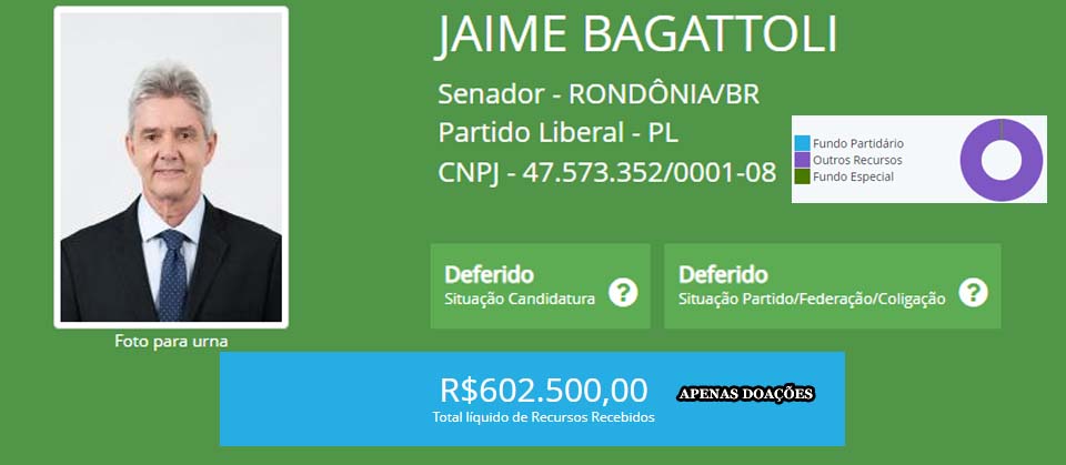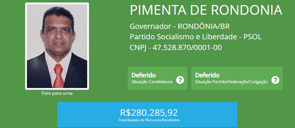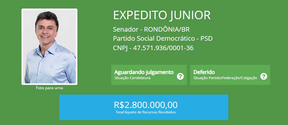 No total, entre concorrentes ao Senado e ao Governo de Rondônia foram distribuídos R$ 20.859.213,32.