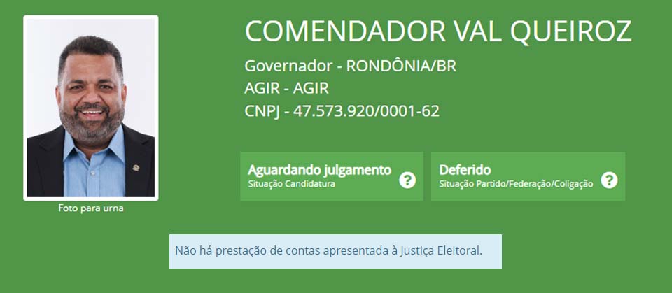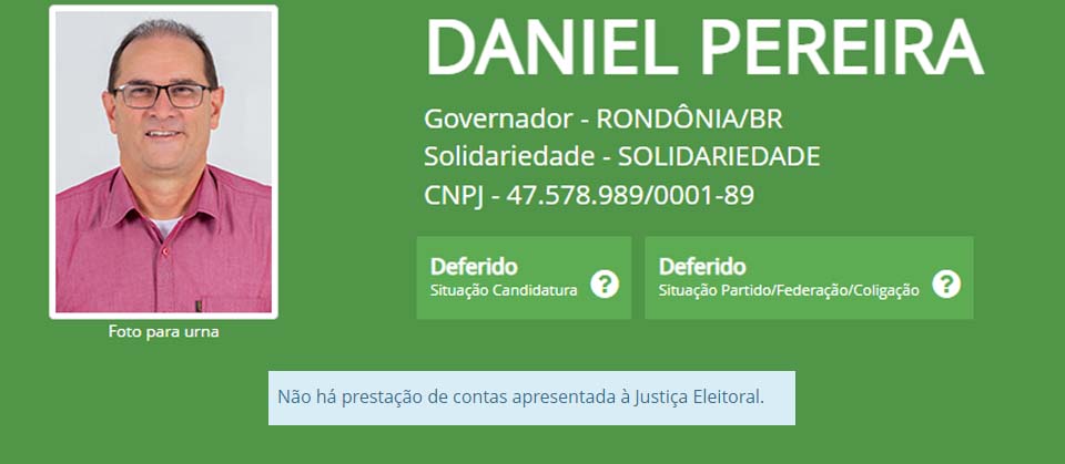 Entre os candidatos ao Governo de Rondônia Daniel Pereira, do Solidariedade; e Val Queiroz, do AGIR, ainda não declararam valores.