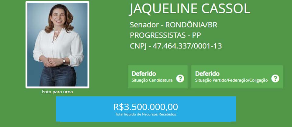 Já em relação ao sete candidatos ao Senado Federal, a maior fatia do Fundão ficou com Jaqueline Cassol, do Progressistas, que dispõe de R$ 3,5 milhões para fazer campanha.