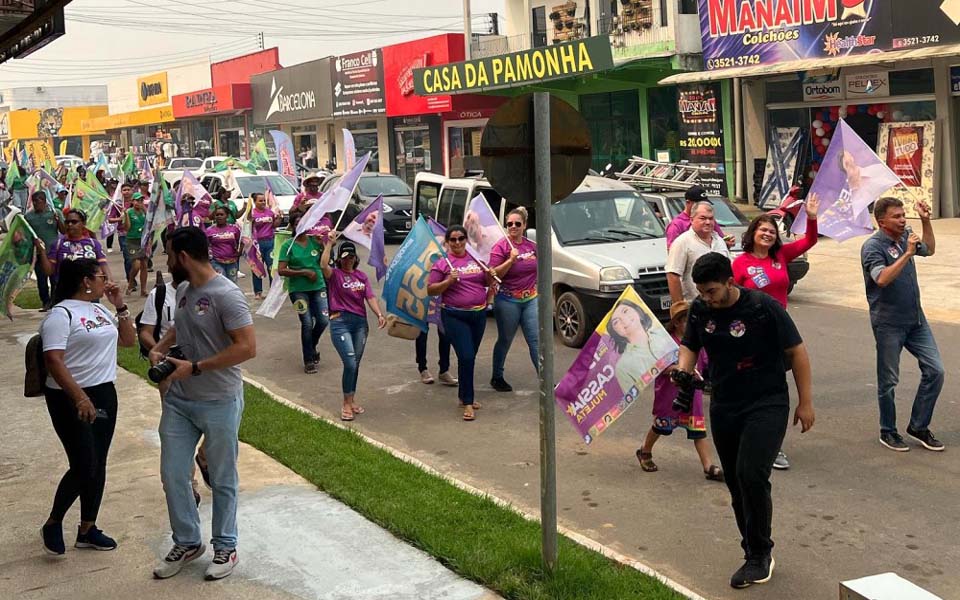 A candidata a deputada estadual Cassia Muleta do PODEMOS, em companhia do candidato ao Governo do Estado de Rondônia Leo Moraes (PODE) e o candidato ao senado, Expedito Junior (PSD), caminharam nesta quinta-feira (22) pelas ruas das cidades de Jaru e Governador Jorge Teixeira.