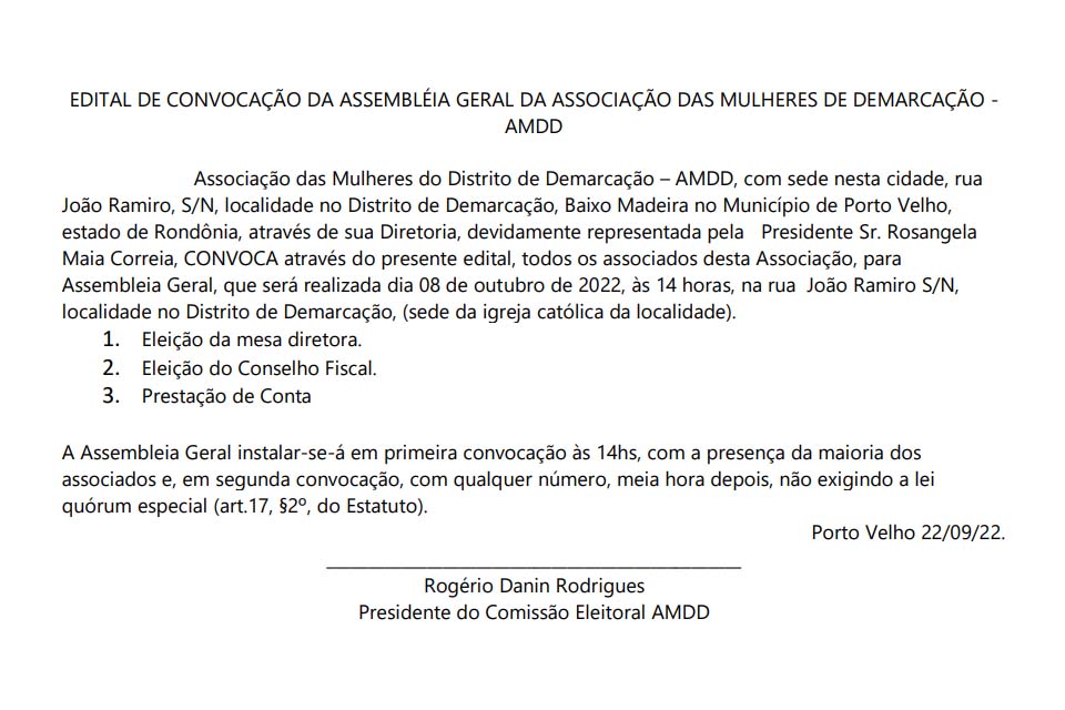 Edital de Convocação da Assembleia Geral da Associação das Mulheres de Demarcação - AMDD