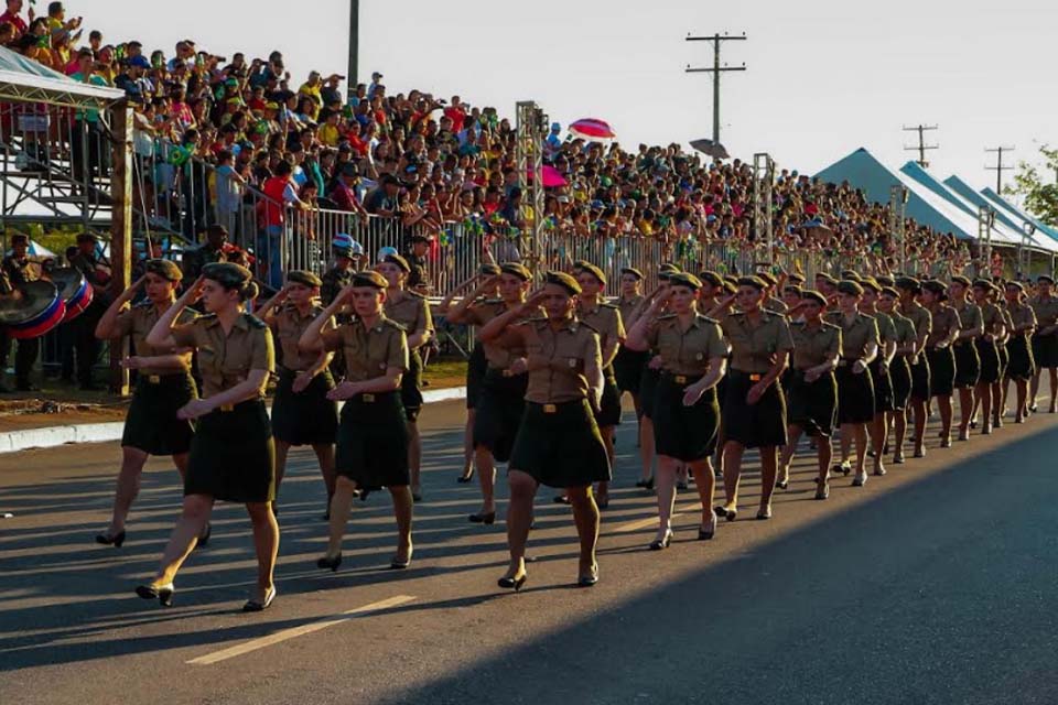 A organização para o tradicional desfile cívico de 7 de Setembro, que encerra a programação da Semana da Pátria em Rondônia, está concluída. O desfile em Porto Velho acontece na Avenida Imigrantes e tem início às 17h desta quarta-feira (7). Entre os envolvidos na organização do evento estão, a Polícia Militar de Rondônia - PMRO, Secretaria Municipal de Trânsito, Mobilidade e Transportes - Semtran, Polícia Federal - PF, Polícia Rodoviária Federal - PRF e Exército Brasileiro - EB, Marinha e Aeronáutica. Além de outros órgãos do Estado e Prefeitura.