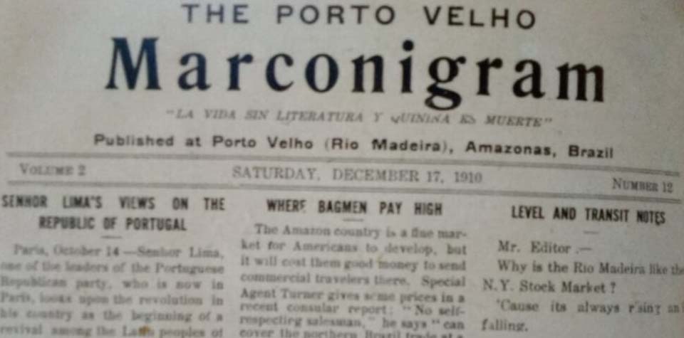 Entre 1909, quando saiu a primeira edição do jornal “The Porto Velho Times”, e 1912 quando foi a inauguração da estrada, mais dois outros jornais circularam na, hoje, capital rondoniense, sempre impressos na gráfica da construtora da ferrovia Madeira-Mamoré e, como tal, quase todas edições integralmente em língua inglesa. Um deles, o “The Porto Velho Marconigran”, edição de dezembro de 1910, no entanto, trazia em sua logomarca uma frase em espanhol, “La vida sin literatura y quinina es muerte”, talvez uma campanha de conscientização dos trabalhadores da obra de se prevenirem contra a malária, que naquele ano foi feita pelo cientista brasileiro Osvaldo Cruz, que veio a Porto Velho contratado pela empresa construtora para uma ação contra a malária.