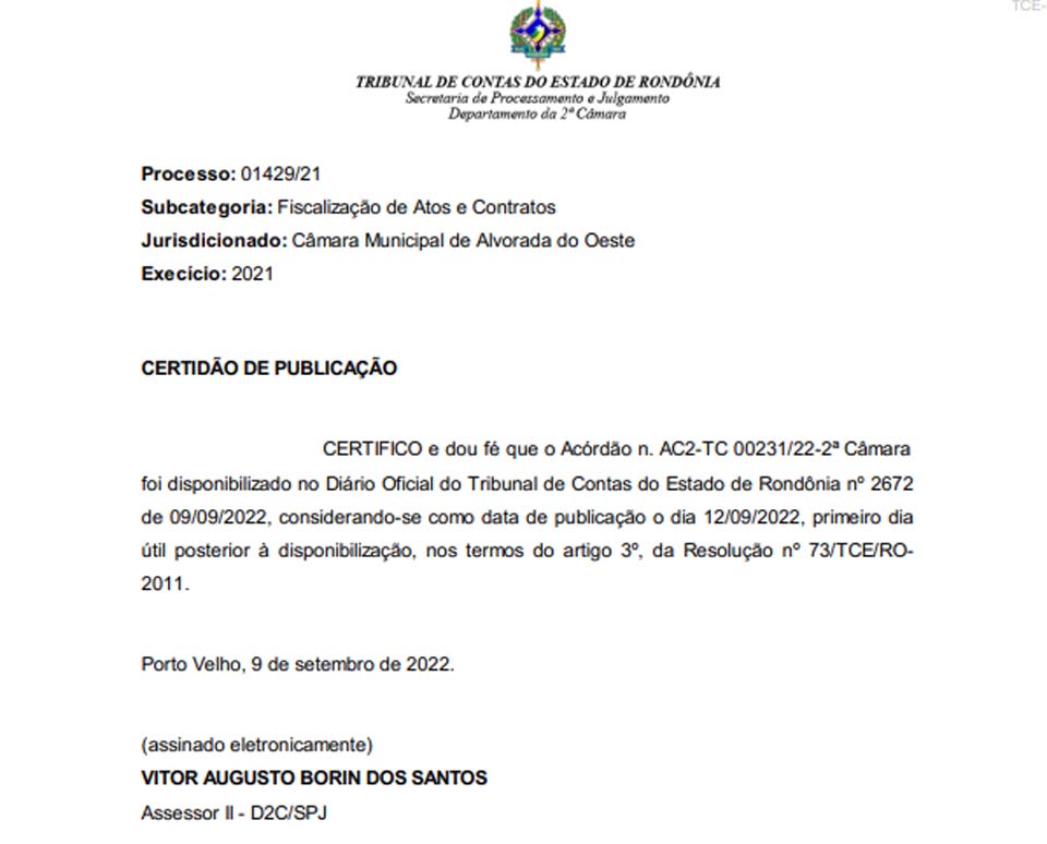 Porto Velho, RO – O Tribunal de Contas do Estado de Rondônia (TCE/RO) determinou a ilegalidade de licitação formalizada em Alvora d’Oeste, e, consequentemente, o contrato firmado por conta do resultado do certame.