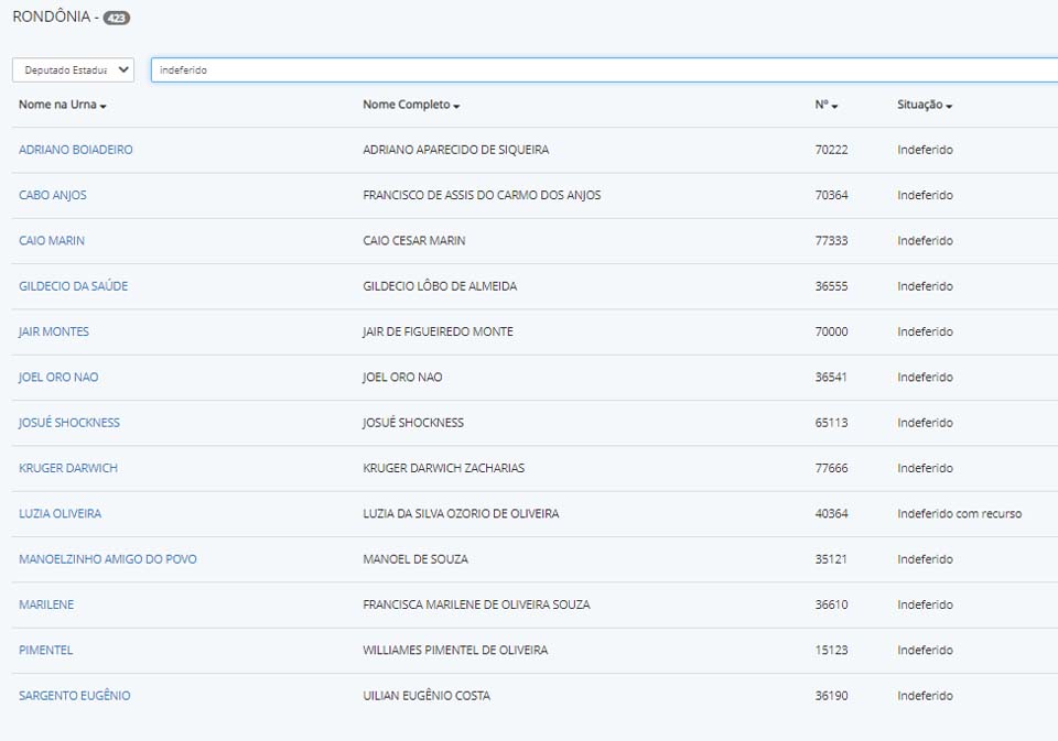Entre célebres figuras na lista de indeferimentos há também o senador Acir Gurgacz, do PDT; e o até há pouco candidato à cadeira-mor do Palácio Rio Madeira, Val Queiroz, do AGIR. O ex-secretário de Saúde Williames Pimentel, do MDB; o exótico Adriano Boiadeiro, ex-parlamentar, hoje também no Avante.