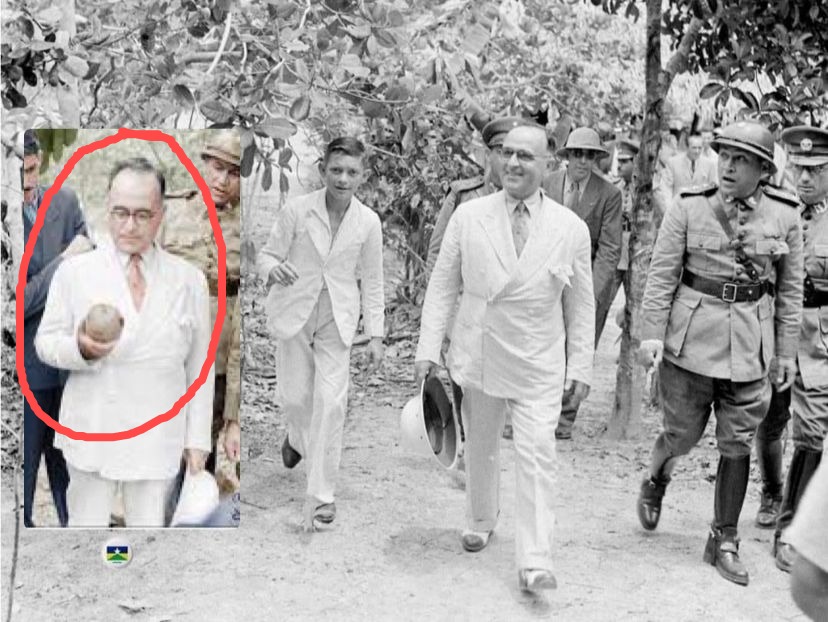 O garoto (ao lado do presidente Getúlio Vargas), filho de um sitiante, ciceroneou e apresentou o sítio, nas proximidades, hoje, da Embrapa, onde Getúlio tomou café, a 12 de outubro de 1940, ocasião em que Vargas improvisou Hamlet ao ver um ouriço de castanha. Conforme o historiador Esron Menezes, testemunha dos encontros, Getúlio ouviu o governador do Território do Acre, Epaminondas Martins, sugerir ser criado um Território Federal com partes dos estados de Mato Grosso e Amazonas, e a capital em Porto Velho, então município amazonense. A proposta foi feita, a pedido de Aluízio Pinheiro, diretor-geral da Estrada de Ferro Madeira-Mamoré, pelo governador acreano. Em 1943 Getúlio criaria o Território do Guaporé, conforme o pedido. (F. acervo Esron Menezes doadas a Lúcio Albuquerque)