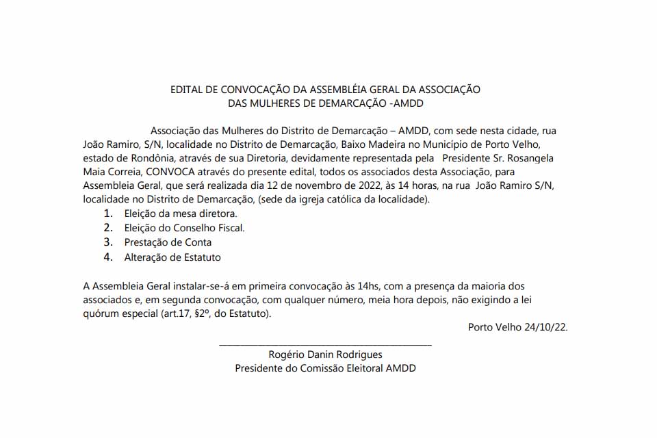 Edital de Convocação | Associação das Mulheres de Demarcação - AMDD