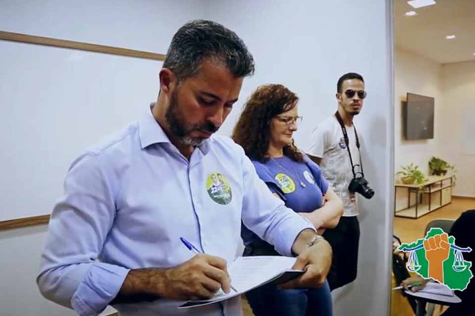 No final foi feito o registro do encontro com imagens do candidato recebendo o documento que celebra a democracia entre as ideologias de direita e esquerda, tendo o povo de Rondônia como signatário do feito.