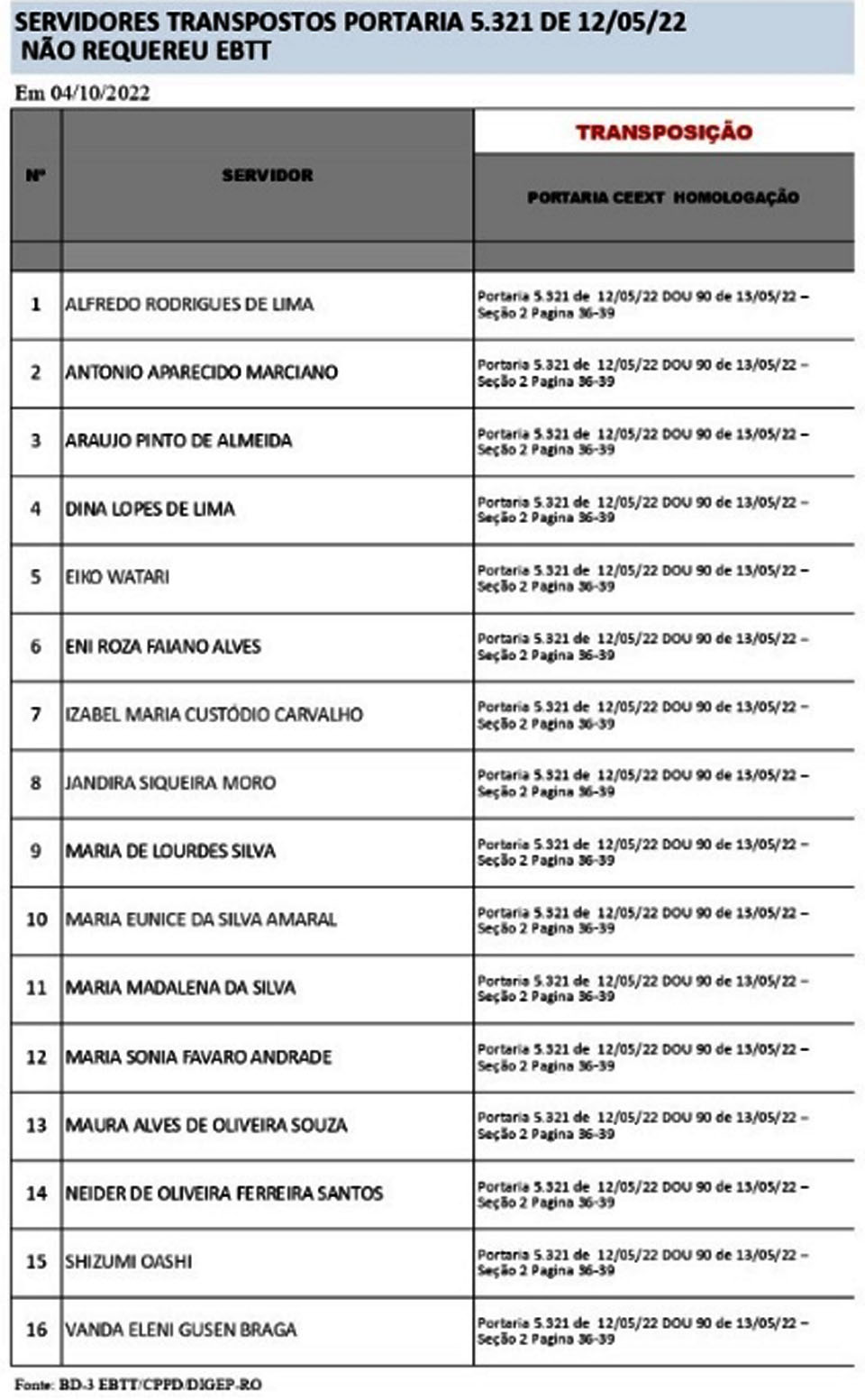 CONFIRA RELAÇÃO DE PROFESSORES TRANSPOSTOS