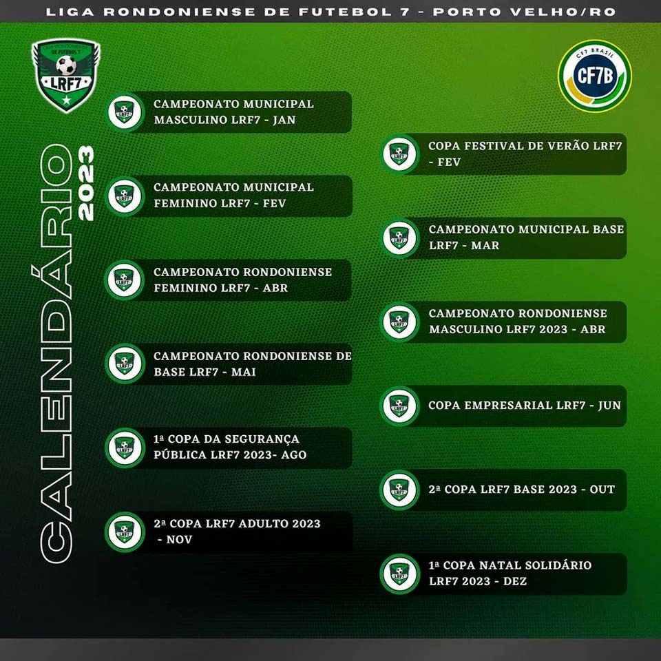 A Liga Rondoniense de Futebol 7 (LRF7) divulgou o calendário para o próximo ano. Ao todo, serão realizados 12 campeonatos.