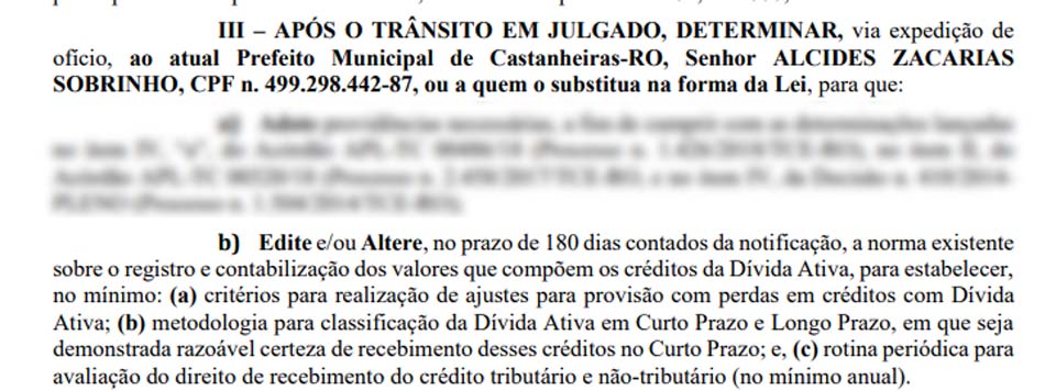 E TCE/RO reiterou a deliberação, dando 180 para o cumprimento a alertando que nova desfeita em relação ao comando pode gerar mais uma punição financeira de até R$ 81 mil.