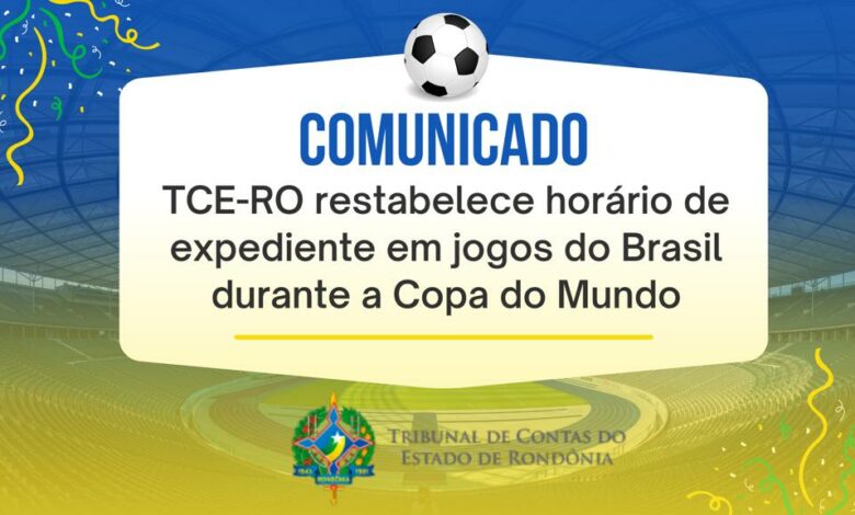 O Tribunal de Contas de Rondônia (TCE-RO), em nova portaria publicada no Diário Oficial Eletrônico (DOE) nesta quinta-feira (8/12), restabeleceu os horários de expedientes nos dias úteis previstos para os jogos da Seleção Brasileira de Futebol na Copa do Mundo FIFA 2022.