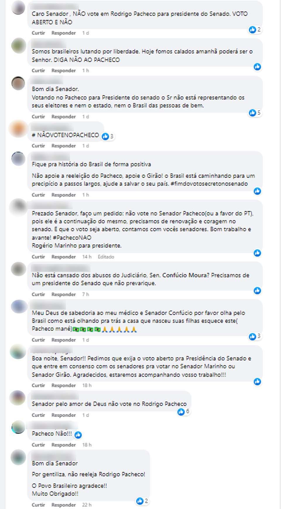 Entretanto, pessoas “inundaram” seu perfil no Facebook para responder à postagem ignorando o seu conteúdo e o cobrando sobre as eleições para o comando do Senado Federal.