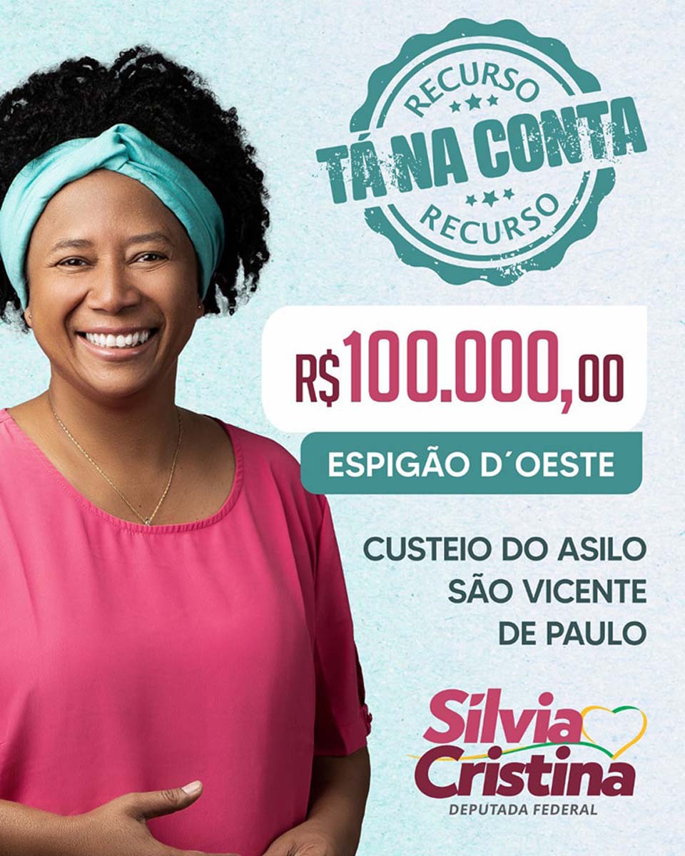 Espigão do Oeste;RO - A Deputada Federal Silvia Cristina, anunciou na última semana, a destinação de R$ 100 mil em recurso, por meio de emenda de sua autoria, para custeio das atividades do Asilo São Vicente de Paulo, entidade localizada no município de Espigão do Oeste.