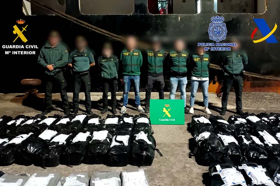 A Guarda Civil da Espanha interceptou um navio cargueiro contendo 4,5 toneladas de cocaína próximo as Ilhas Canárias e prendeu os 15 tripulantes da embarcação. Apreensão ocorreu no dia 18 de janeiro.