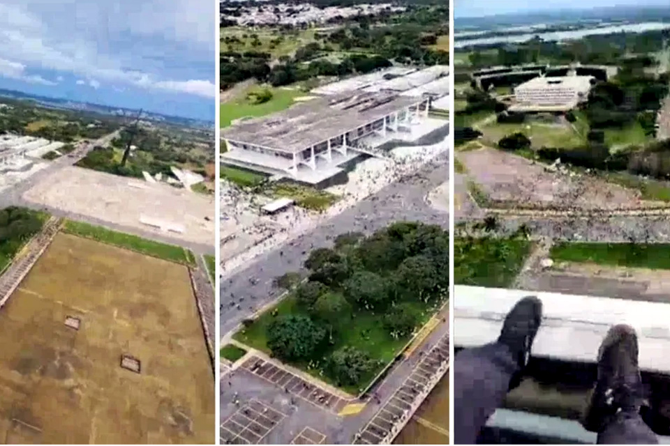 Em um trecho do vídeo, de cima do prédio, Wellington Firmino vê a movimentação durante a invasão em Brasília e comenta: "É tiro, bomba e porrete! Vocês estão vendo tudo de cima, hein? Olha o luxo".