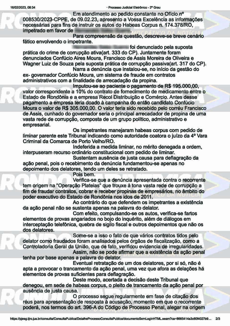 As informações do processo trazidas pelo Rondônia Dinâmica são públicas. Todos os envolvidos têm o direito ao contraditório e à ampla defesa e devem ser considerados inocentes até o trânsito em julgado de eventual sentença condenatória.