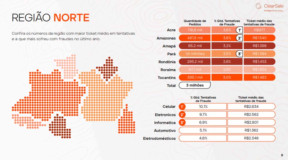 “Mais uma vez a Região Norte continua com o maior índice de tentativas de fraude sobre a quantidade total de transações, inclusive ela também é a primeira no pódio do ticket médio da tentativa de fraude com o valor de R$ 1.420,00”, diz a ClearSale. CONTEÚDO COPIADO DO SITE RONDONIADINAMICA.COM [LEIA NA FONTE ORIGINAL]