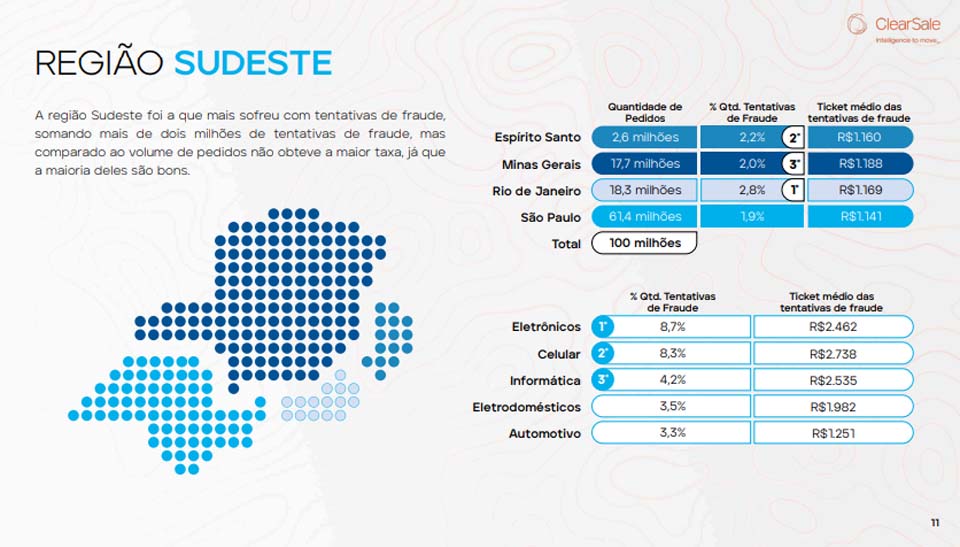 “Considerando apenas números absolutos, a Região Sudeste ficaria com o maior número de fraudes, já que é a que concentra a maioria dos pedidos no país”, encerra o empreendimento.