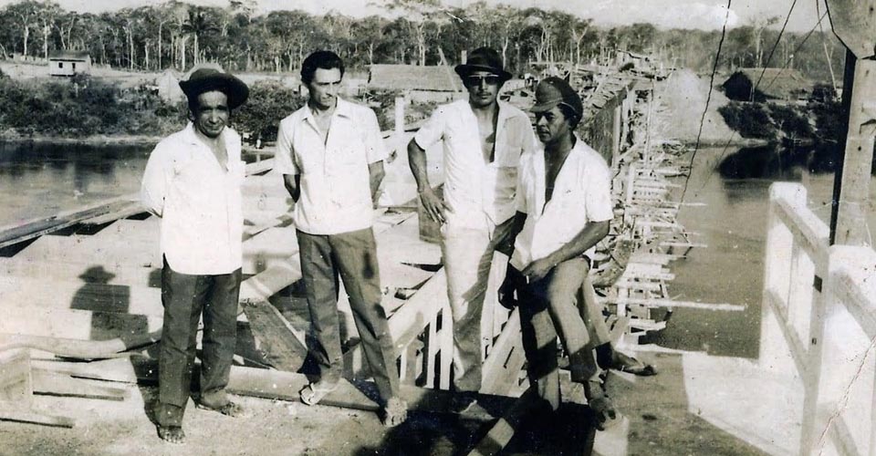 O principal mestre-de-obras da construção foi Sebastião Dia da Silva (1º à esquerda na foto), e com a ponte o desenvolvimento começou a ganhar mais força na região, época em que milhares de famílias deixaram suas terras no centro-sul mudando-se para o então Território.