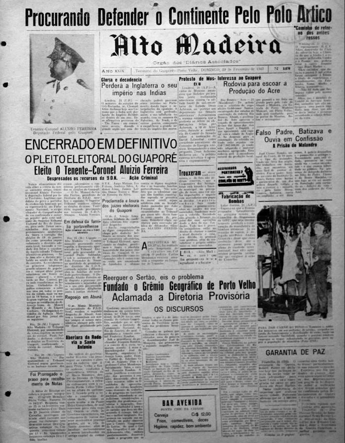Constituído Território em 1943, o do Guaporé (em 1956 Rondônia), elegeu seu único deputado federal para a legislatura 1947/1951, e depois de trocas de acusações entre partidários de Aluízio Ferreira (1.288 votos) e Paulo da Cruz Saldanha (988 votos), o TSE manteve a decisão da justiça local, vitória a Aluízio.