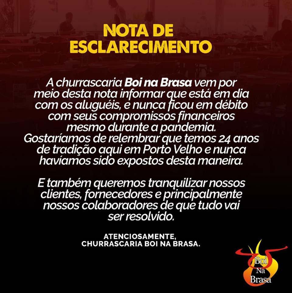 A NOTA DA BOI NA BRASA (PUBLICADA NO INSTAGRAM DA EMPRESA):