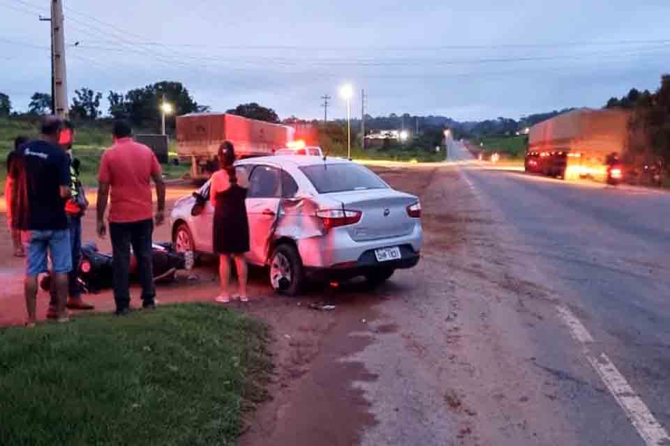 O sinistro envolveu uma motocicleta Yamaha Lander e um Fiat Siena, segundo apurado ambos seguiam sentido ao Frigon, quando o Siena resolveu adentrar ao Posto Marques e a motocicleta que vinha atrás transportando duas pessoas, acabou colidindo violentamente no veículo.