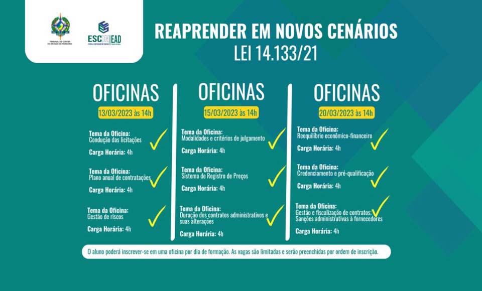 A continuação da ação visa preparar os servidores para a aplicação segura da Nova Lei de Licitações e Contratos Administrativos (Lei nº 14.133/21). Para tanto, é necessário estudar a lei, suas inovações e todo o seu potencial de impactar no processo de contratação pública, ampliando assim a competência profissional no estado.