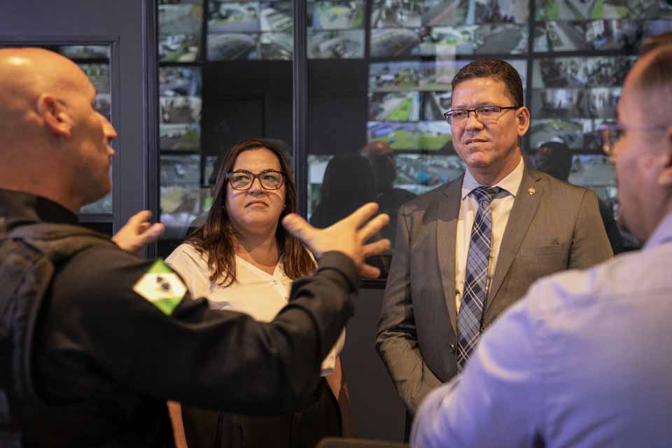 O governador de Rondônia, Marcos Rocha esteve no município de Pinhais, no Paraná, para conferir algumas ações da Secretaria da Segurança Pública do Paraná, na região, a exemplo do sistemas de videomonitoramento de segurança denominado “Muralha Digital’’, um serviço de inteligência que integra diversas câmeras espalhadas pela cidade e monitoradas por um Centro de Controle Operacional.