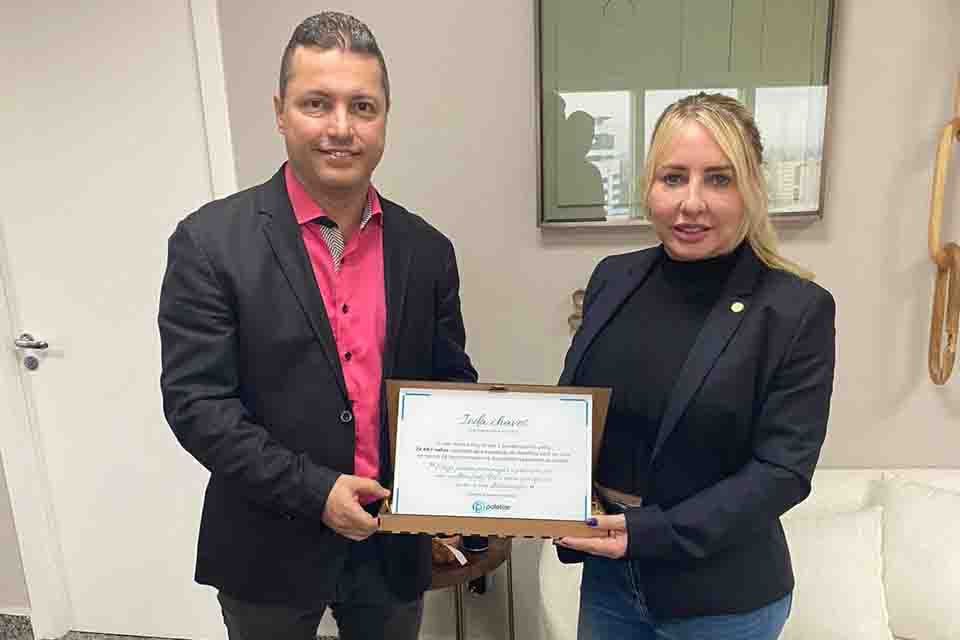 Na última quinta-feira (16), a deputada estadual Ieda Chaves (União Brasil) recebeu uma placa de reconhecimento pelos 24.677 votos recebidos na última eleição em Rondônia. A condecoração foi entregue pela empresa Politize - Automação Política.