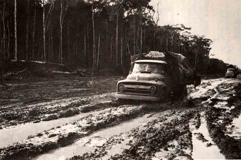 A foto é da “Caravana Ford”, a primeira comitiva de caminhões que veio rodando de São Paulo a Porto Velho, citada como qualquer uma das muitas e difíceis fases de tráfego na BR-29 (depois 364) nos anos da grande colonização pela estrada.