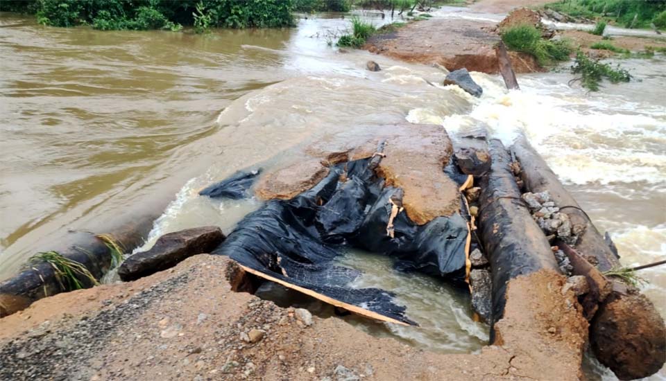 Imagens feitas no local mostram que a passagem de veículos sobre a ponte improvisada com madeira está comprometida. Isso porque o nível do rio subiu gradativamente nas últimas semanas e a água passou por cima da ponte, fazendo a estrutura ceder parcialmente.