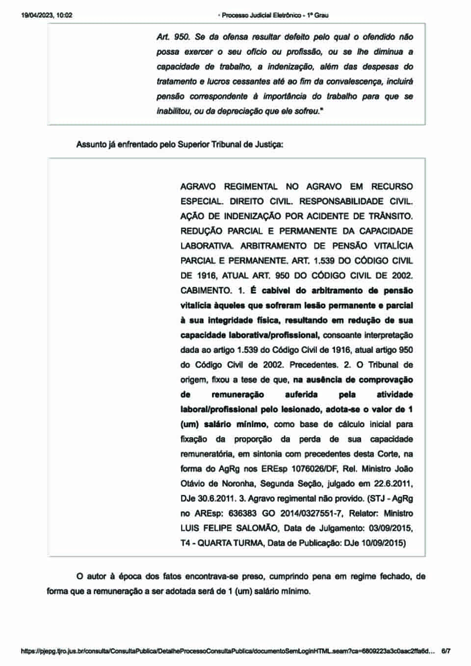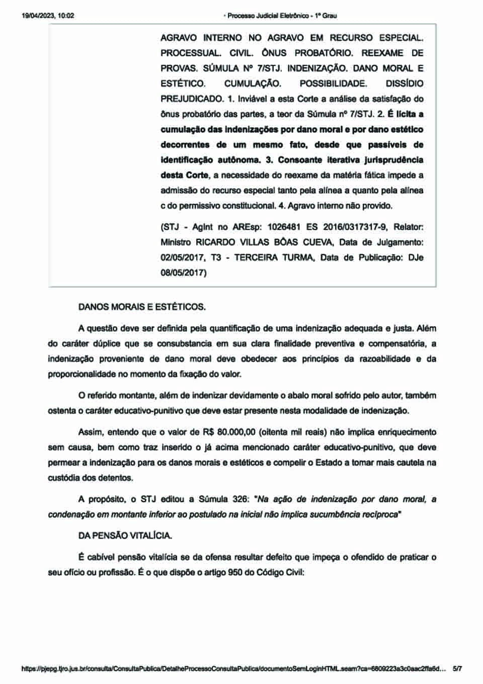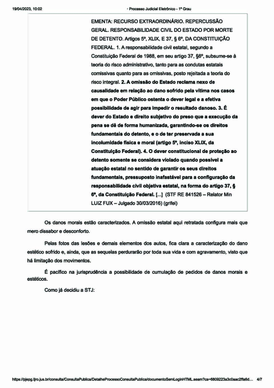 “Pelas fotos das lesões e demais elementos dos autos, fica clara a caracterização do dano estético sofrido e, ainda, que as sequelas perdurarão por toda sua vida e com agravamento, visto que há limitação dos movimentos”, acresceu.