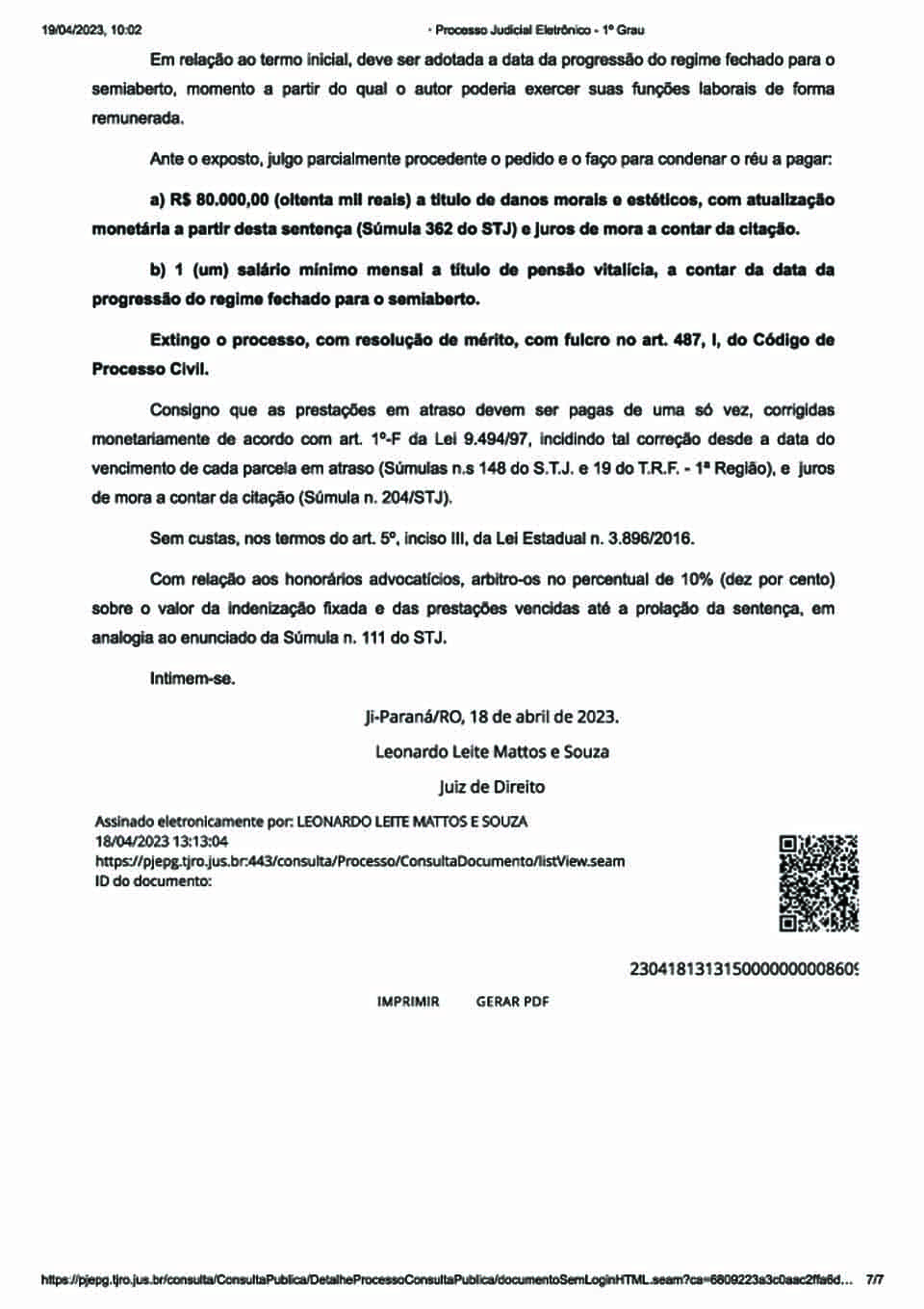 CONFIRA A SENTENÇA: