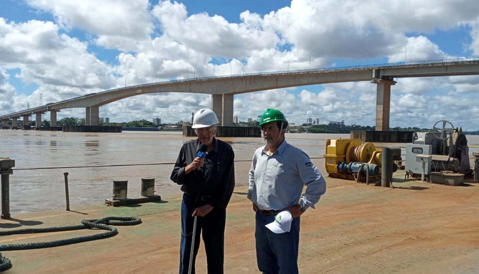 O Diretor Técnico da APROSOJA, Victor Paiva visitou essa semana diversos pontos, por onde são exportados os grãos de soja, assim como outros produtos rondonienses, mostrando imagens e fotos para o programa “Campo e Lavoura” da Rede TV! Com o madeira de velho de guerra bufando acima do barranco mostrando a beleza e a força da natureza.