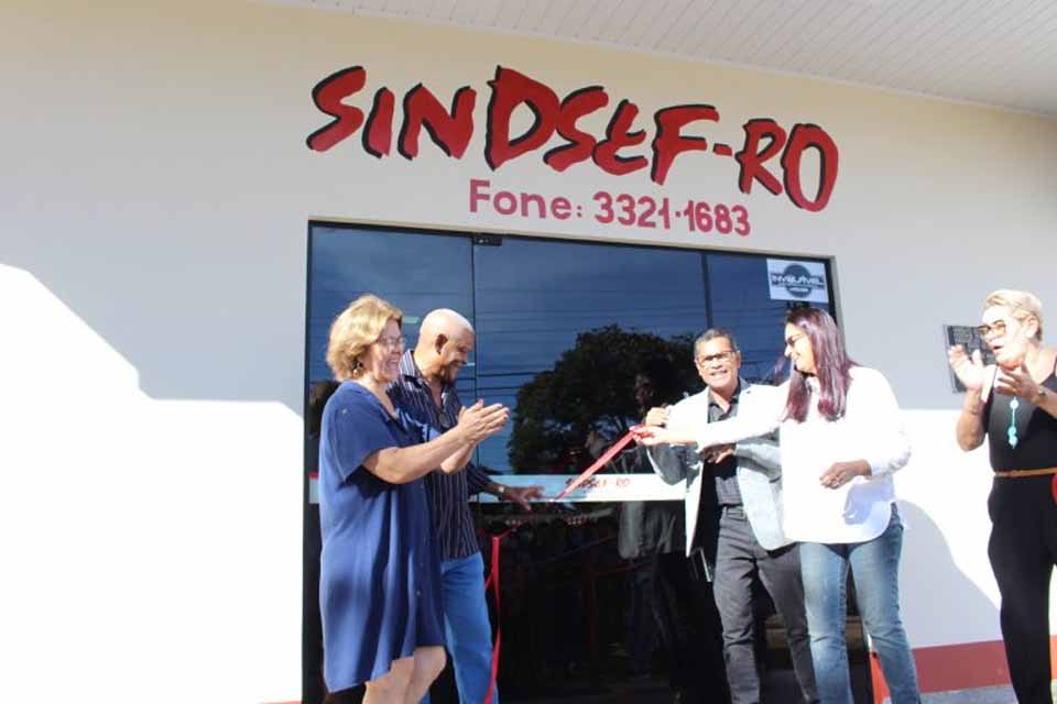 Uma cerimônia de descerramento de placa foi conduzido pelo presidente do Sindsef-RO, Almir José Silva, acompanhado da diretora da Secretaria- Geral, Eliete Azevedo, no ato representando o vice-presidente, Mário Jorge Souza de Oliveira e pelos dirigentes da Coordenação de Vilhena, Roberval Carvalho (coordenador), Janete do Nascimento (secretária) e Lucinda Josefá (tesoureira).