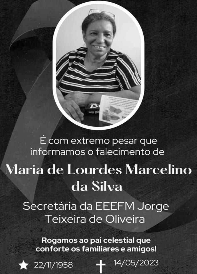 Maria de Lourdes era secretária da Escola Estadual Jorge Teixeira de Oliveira, localizada no bairro Ulisses Guimarães, na Zona Leste de Porto Velho, e sua dedicação e trabalho serão lembrados por muitos.