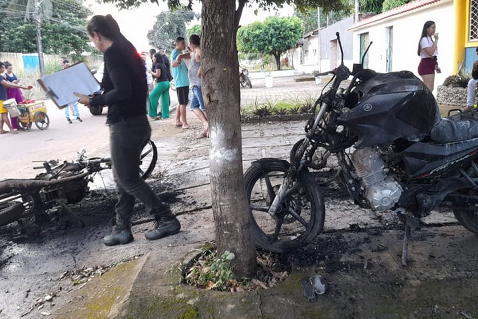 Um incêndio criminoso destruiu três motos em frente a um prédio onde funciona uma empresa de marketing na Rua Nicarágua, bairro Embratel em Porto Velho.