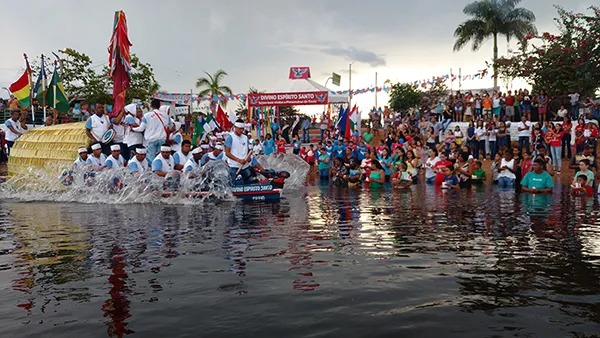 (Foto – Promesseiros mergulhados na água: emoção da chegada do Divino numa comunidade guaporeana)