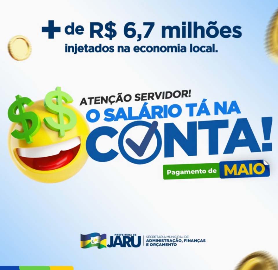 Cumprindo rigorosamente o calendário, a prefeitura de Jaru, realizou nesta terça-feira (30), o pagamento de todos os servidores públicos do município, referente ao mês de maio.