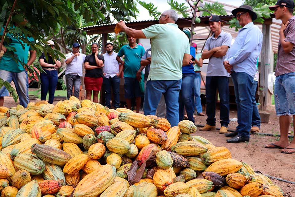 Os produtores rurais e os técnicos da Emater e de outros órgãos se reuniram na propriedade de Anildo dos Santos, na linha T8, para debaterem sobre a cultura do cacau e sua contribuição na renda familiar. Foram abordados os benefícios para a recuperação do solo e recomposição florestal, inclusive para atender requisitos legais, como nos casos de reposição exigidas pela legislação ambiental, práticas sustentáveis que podem favorecer o comércio internacional.