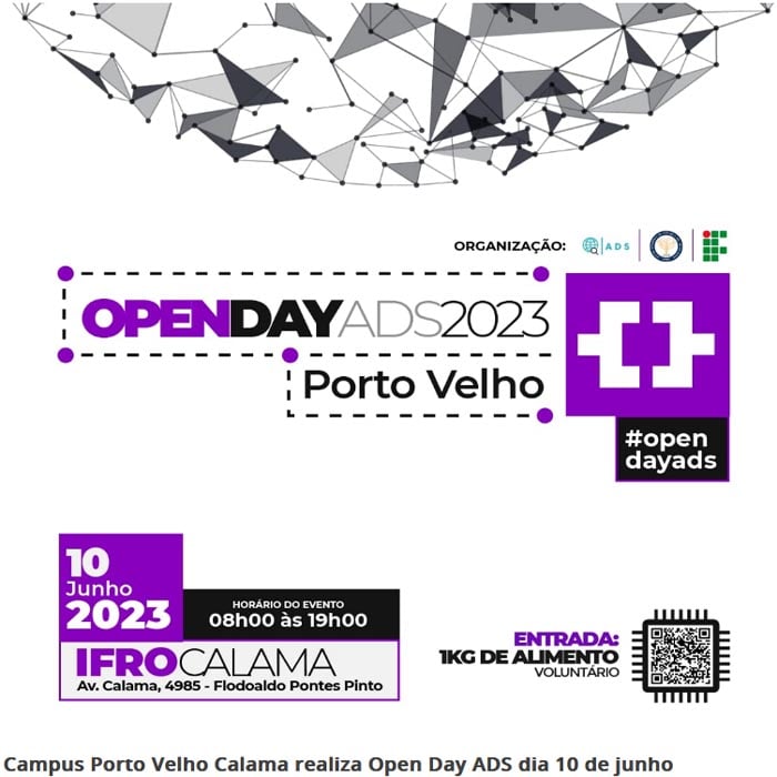 No dia 10 de junho de 2023, o auditório do Instituto Federal de Educação, Ciência e Tecnologia de Rondônia (IFRO), Campus Porto Velho Calama, será o palco da abertura do projeto Open Day ADS. O evento, que ocorrerá durante o período matutino e vespertino, das 8 às 19 horas, tem como objetivo atrair jovens talentos do ensino médio interessados na área de tecnologia. As atividades propostas proporcionarão um ambiente de aprendizado e integração, com palestras, maratona de programação, e oficinas.